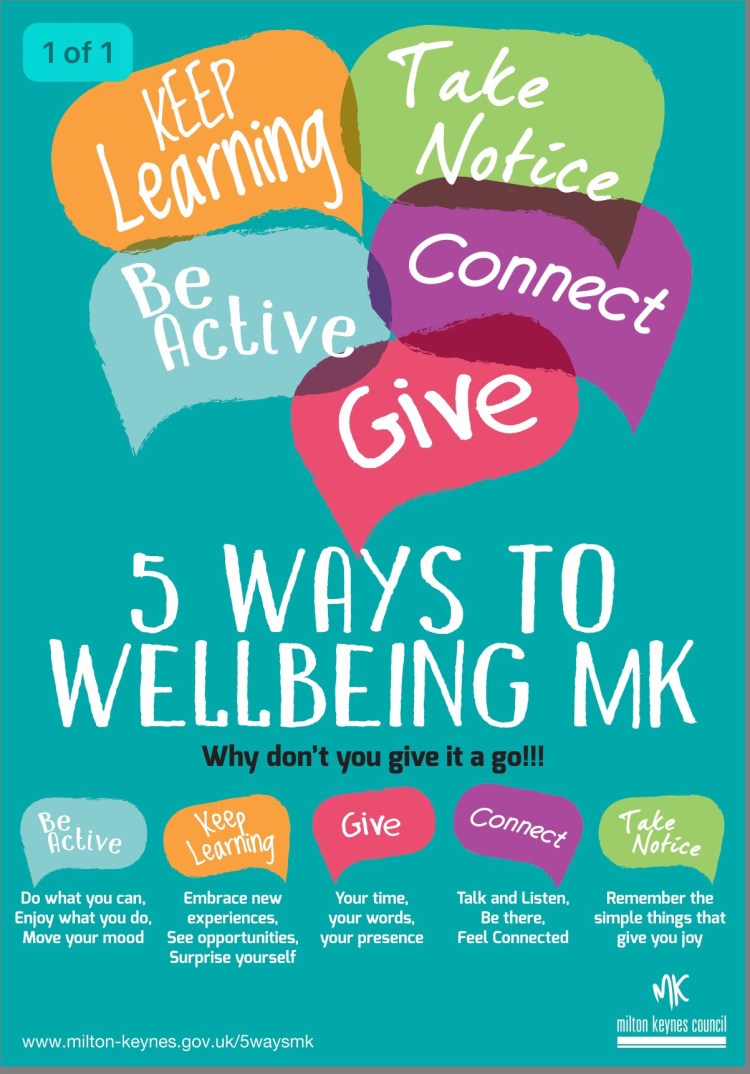 You can also visit the 5 Ways to Wellbeing on the Milton Keynes website.
