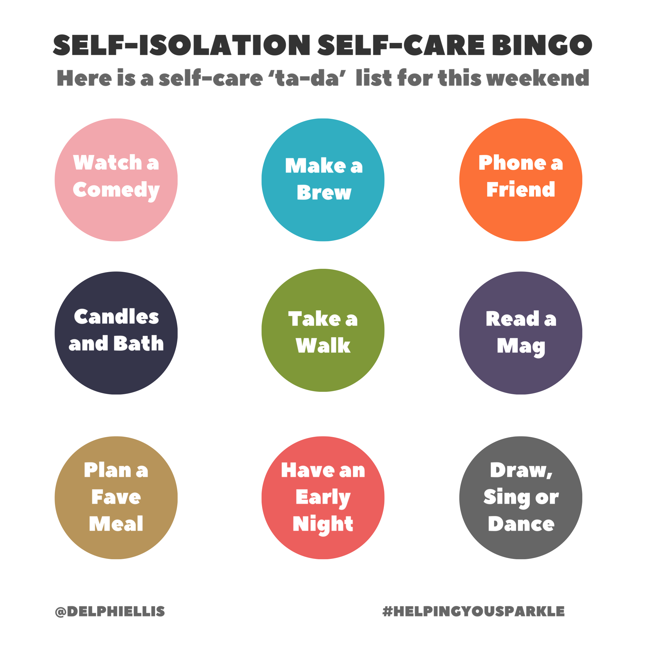 This week, maybe set the intention to Customise Your Rest. Whether you’re working from home, or a key worker in the community, make sure you give yourself time to switch off. Here is an article (via Prima) about how to create a “Stay at Home Spa Day”. You could tailor this to treat yourself to some rest and relaxation, whilst we’re all being encouraged to stay at home if we can. You could transform your bathroom into a treatment room offering yourself a manicure, foot soak or a safely improvised facial (some example in this video). You could create a place of sanctuary in your bedroom with relaxing spa music (on Spotify) in the background. If it’s more comfortable, you could take a look at this Self-Isolation Self-Care “Ta-Da!” List. Or you could just curl up with a book and a brew, and take five to yourself.