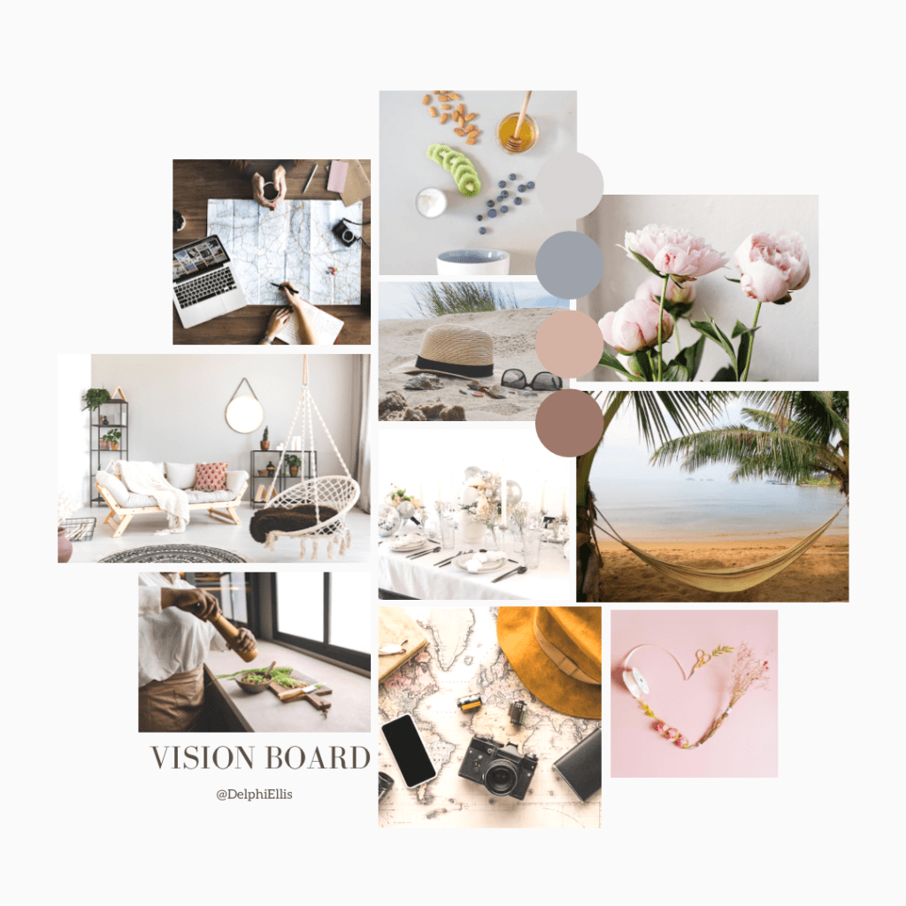 You don’t need a lot of money – if any – to create a Vision Board. You can use apps like Pinterest, create collages (eg in Canva, see below) or use (preferably recycled) A4/A3 card and some glue (if you’re sticking images on it).