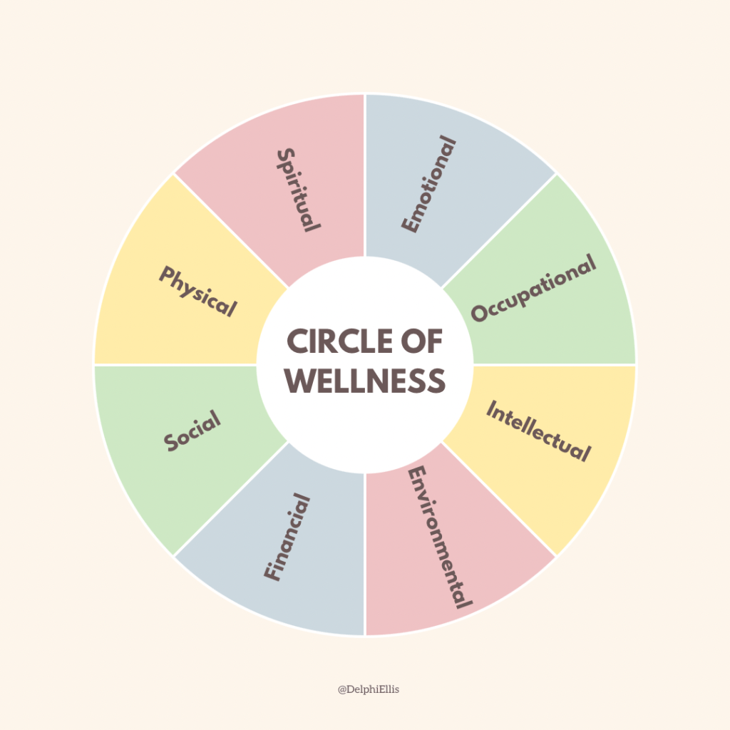You might get started by using what’s sometimes known as a Life Wheel, or the Pillars of Wellness which I’ve included in the image below.
