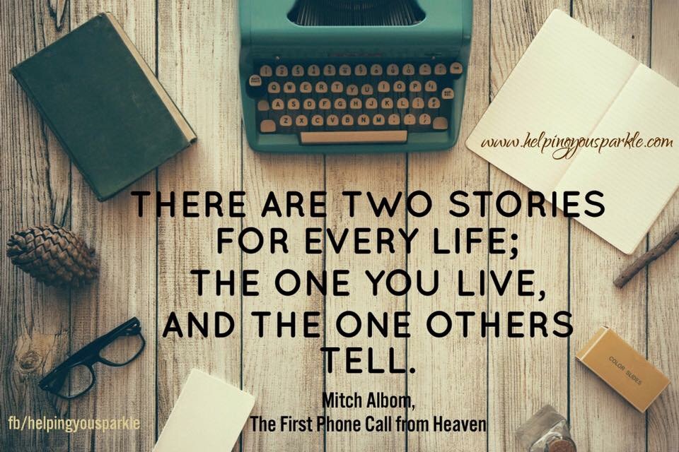 There are two stories for every life; the one you live, and the one others tell ~ Mitch Albom, The first phone call from Heaven.